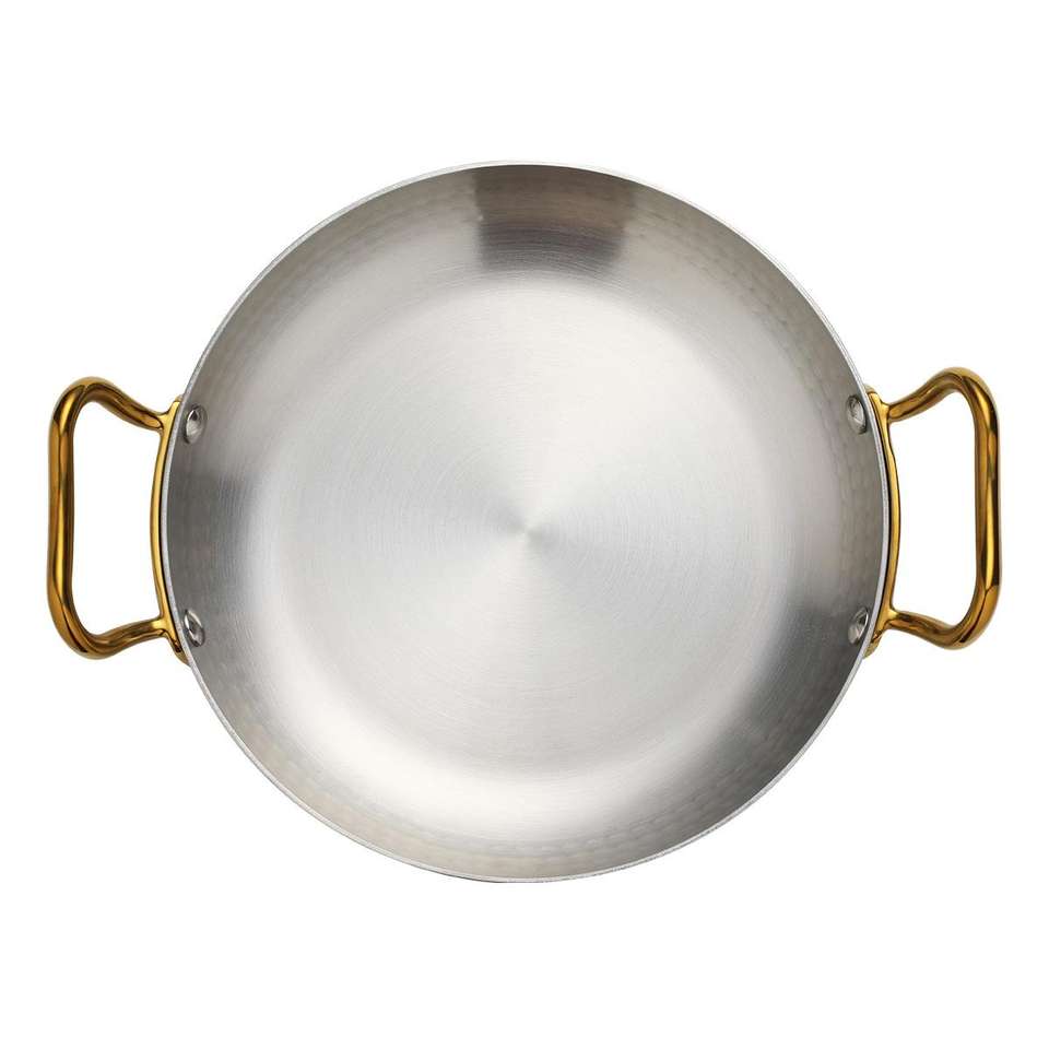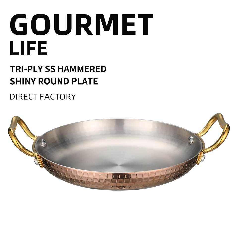 ถาดเสิร์ฟอาหารทะเลสแตนเลสทรงกลมหูจับคู่แบบตอกลาย สำหรับบุฟเฟ่ต์