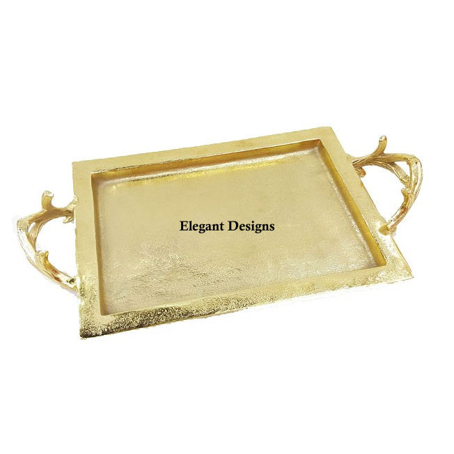 ถาดเสิร์ฟแบบตอกทำมือดีไซน์หรูหราโต๊ะแฟนซีจานเสิร์ฟของตกแต่งงานอีเวนต์