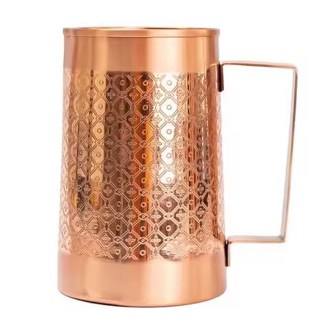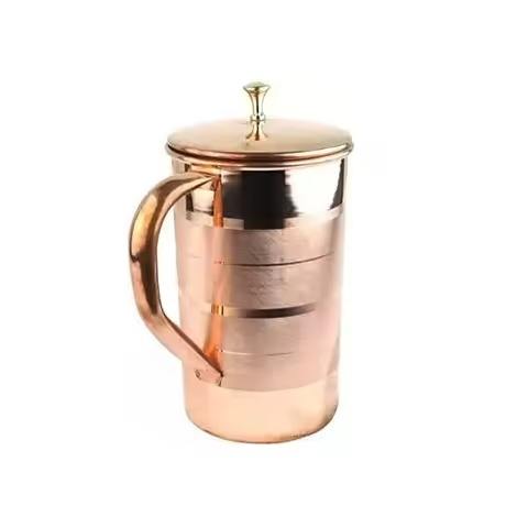 เหยือกทองแดงสำเร็จรูปพร้อมด้ามทองเหลืองและฐานสำหรับเสิร์ฟน้ำใช้ในครัวในบ้าน