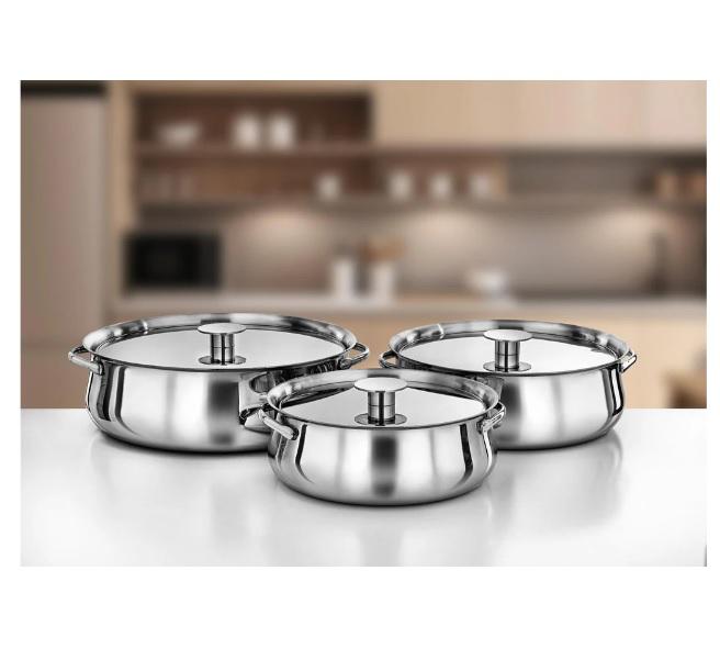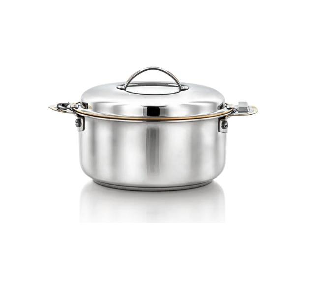 หม้อสแตนเลสทรงกลมเคลือบเงินแบบตอกลาย พร้อมฝาปิด สำหรับเสิร์ฟอาหารร้อน ใช้สำหรับบุฟเฟ่ต์หรือเสิร์ฟอาหารที่บ้าน