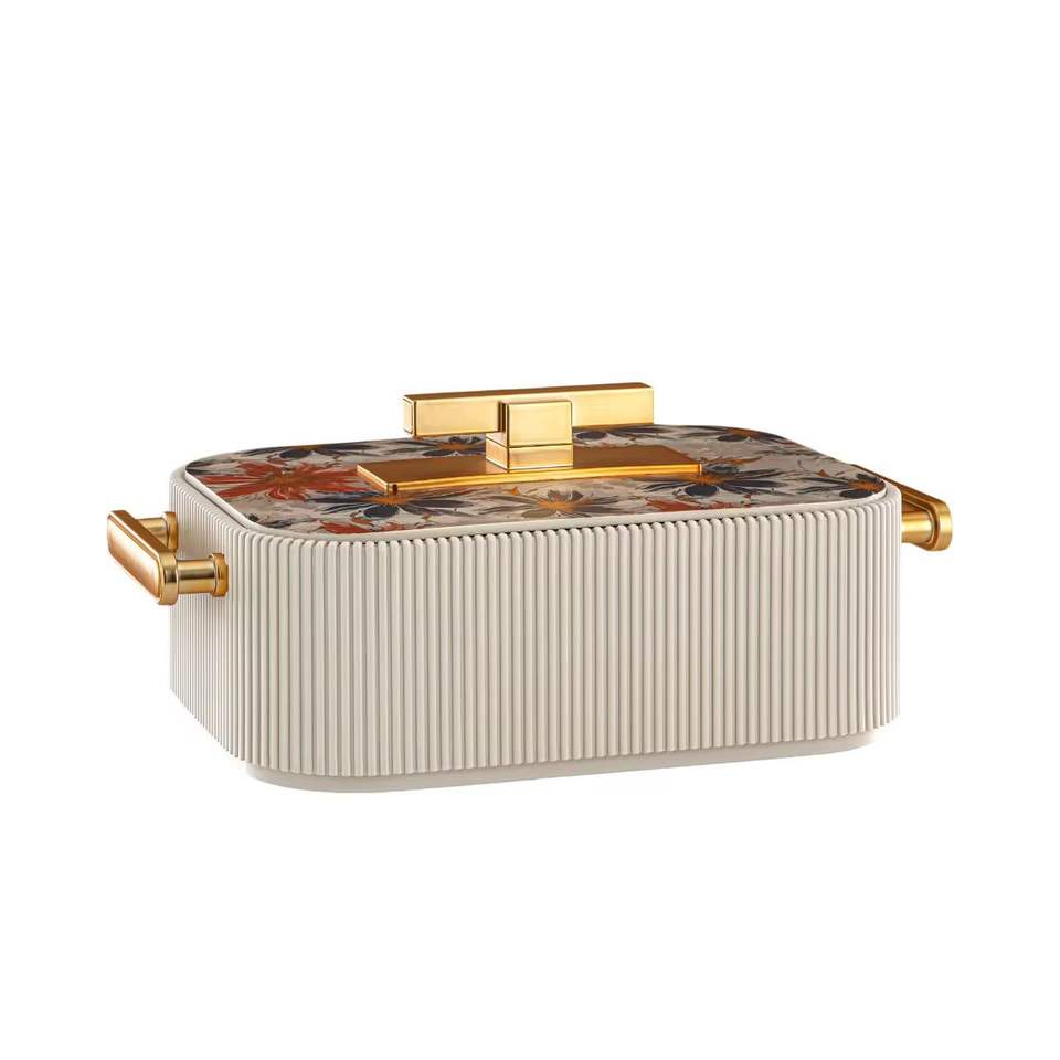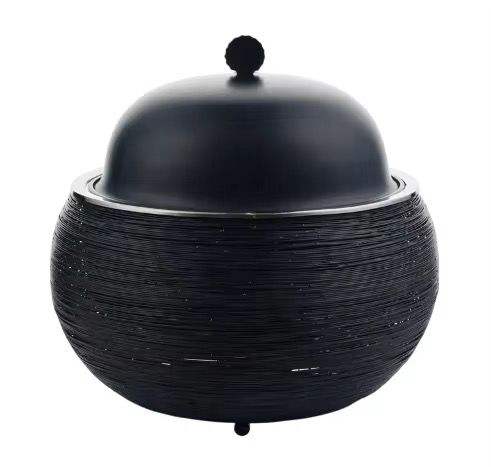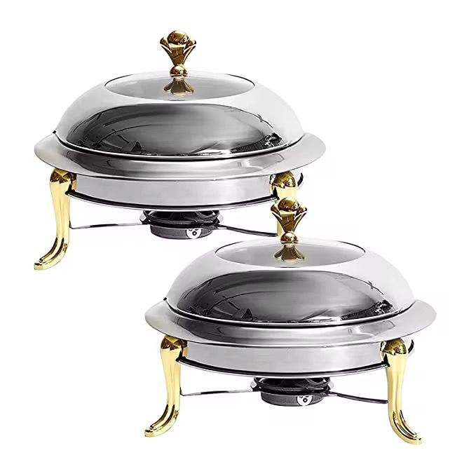 หม้ออุ่นอาหารสแตนเลสแบบตอกลาย พร้อมขาตั้ง ฝาปิด และที่วางทัพพี หม้อตุ๋นเสิร์ฟบุฟเฟ่ต์สุดหรู