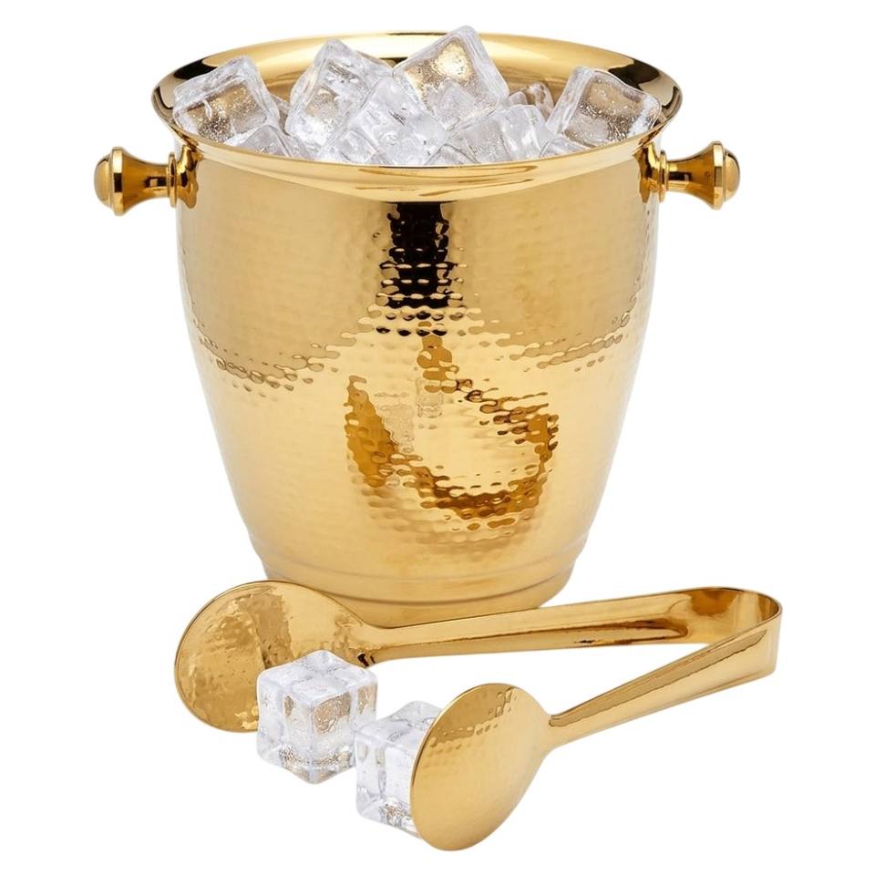ถังน้ำแข็งสแตนเลสแบบตีขึ้นรูป ผนังสองชั้น พร้อมหูหิ้วแบบวงแหวน สีเงิน สำหรับแชมเปญและเบียร์