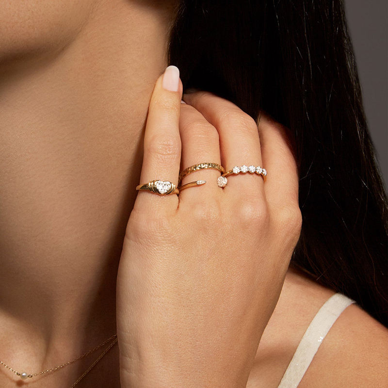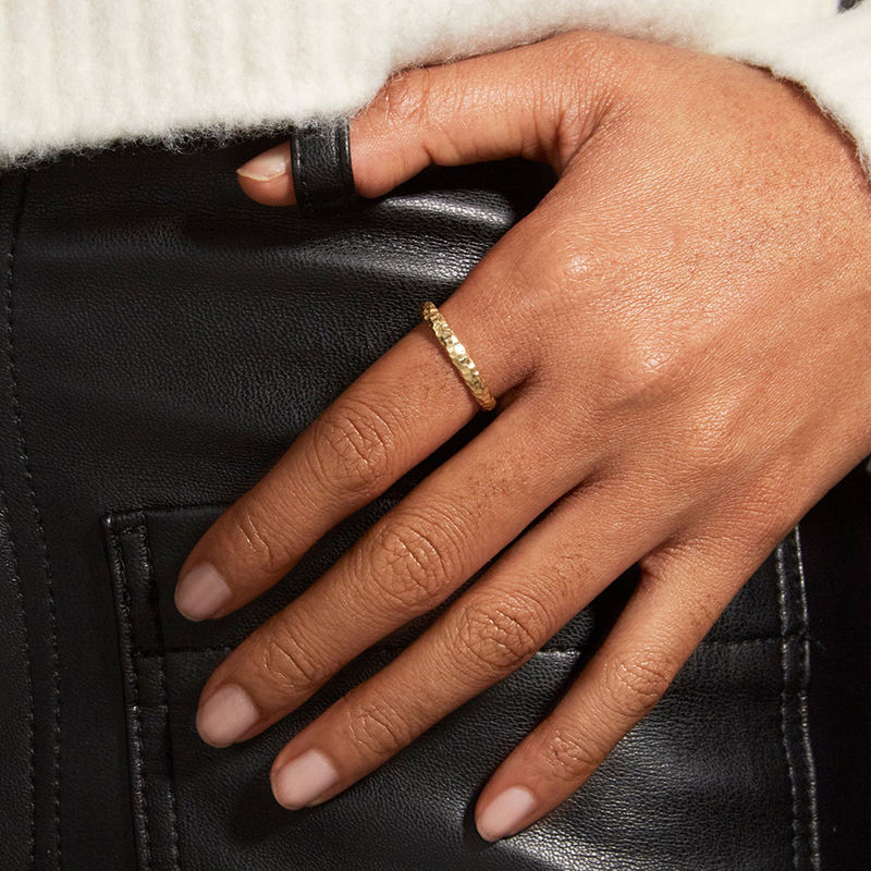 แหวนเงินแท้ตอกลายสำหรับผู้หญิง ดีไซน์หนาแบบกำหนดเอง พร้อมพื้นผิวสัมผัสแบบไม่เรียบสไตล์ Bumb
