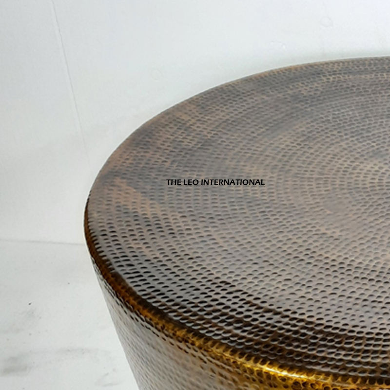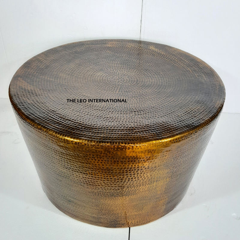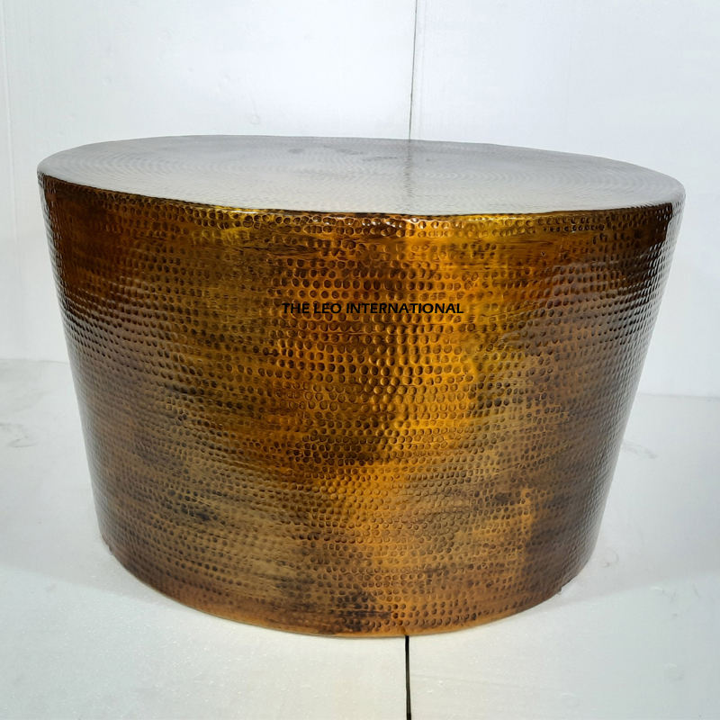 โต๊ะกาแฟทรงกลมสำหรับห้องนั่งเล่น ดีไซน์ทันสมัย ผลิตจากอะลูมิเนียม โลหะทองเหลือง ตกแต่งผิวแบบโบราณ พร้อมลวดลายแบบตอกลาย