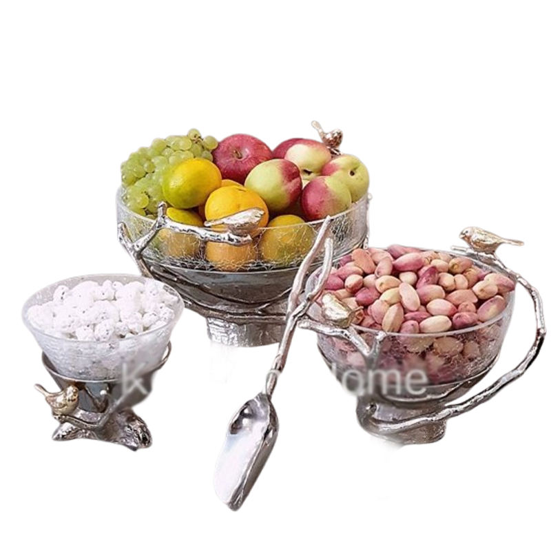 ชามอลูมิเนียมสแตนเลสสำหรับตกแต่งอาหารชามใส่ผลไม้พื้นผิวลายดอกไม้พร้อมฝาปิด