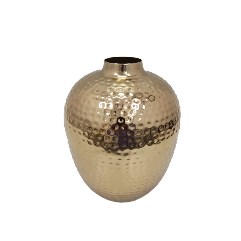 แจกันดอกไม้สีทองเหลืองบริสุทธิ์งานประดิษฐ์ที่ได้รับการออกแบบโดยใช้ค้อนทุบงานฝีมือสุดสร้างสรรค์สำหรับบ้านห้องนั่งเล่น