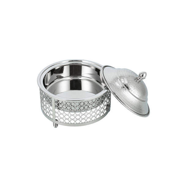 หม้อโลหะทรงกลมแบบตั้งโต๊ะ สีเงิน สำหรับใช้ในบ้านและโรงแรม พร้อมขาตั้ง ใช้สำหรับอุ่นอาหาร กำลังลดราคา