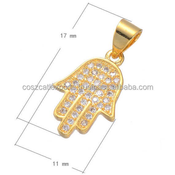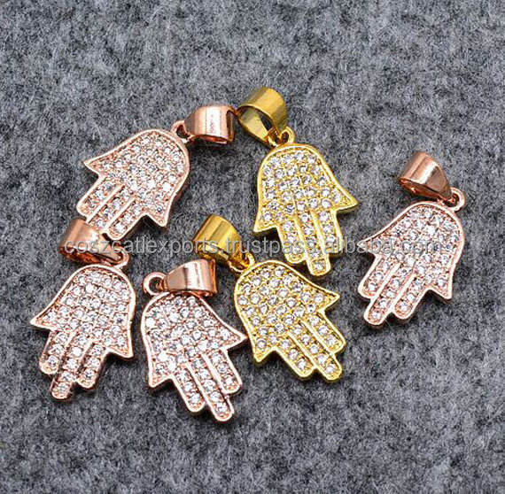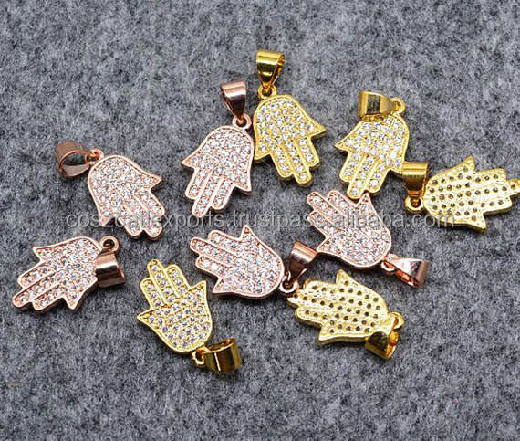 จี้แฮมซาและมือฟาติมา เงินสเตอร์ลิง ประดับคริสตัลแบบคลาสสิก สร้อยคอ DIY พร้อมจี้คริสตัลและชาร์ม