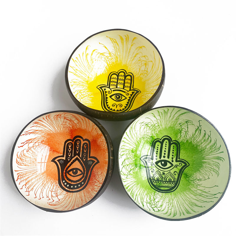 ชามไม้ลายฮัมซา ตาปีศาจ ลายเปลือกมะพร้าว สำหรับใส่ขนม บะหมี่ ข้าว สลัดผลไม้ สมูทตี้ พระพุทธรูป ของตกแต่ง