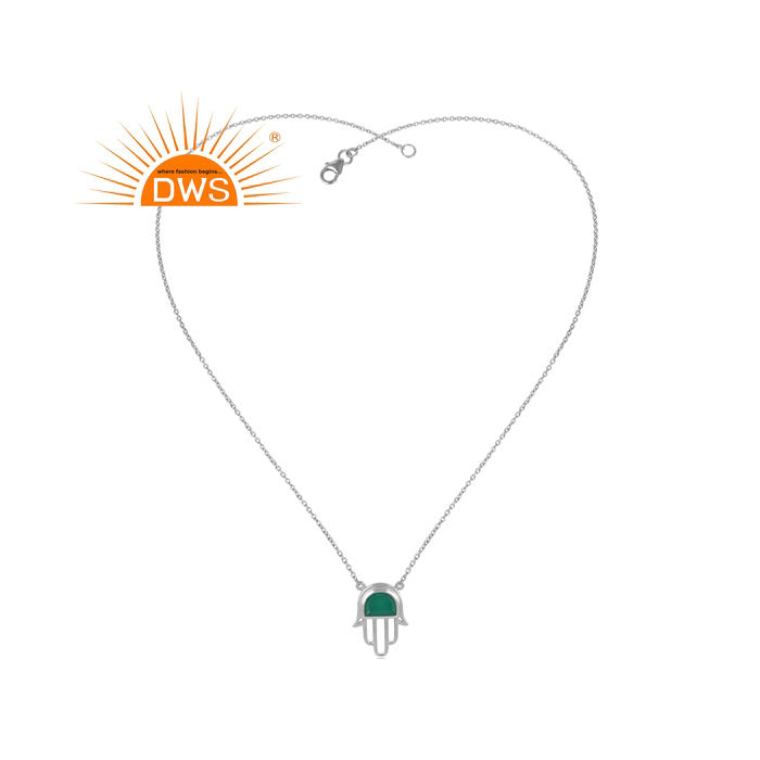 Hamsa Hand Designer Necklace 925 Sterling Silver Chain Necklace Green Onyx Gemstone Necklace Jewelry Supplier