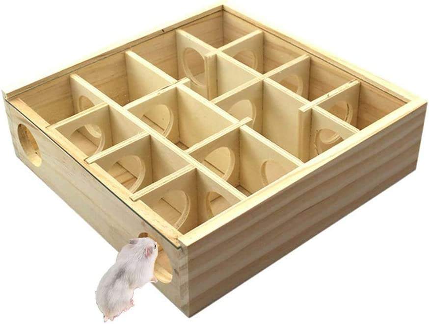อุโมงค์เขาวงกตไม้สำหรับหนูแฮมสเตอร์พร้อมแผ่นกระจกสำรวจของเล่นสำหรับหนูแฮมสเตอร์แคระ