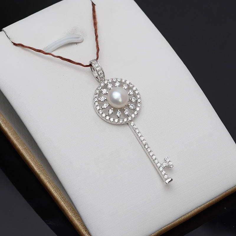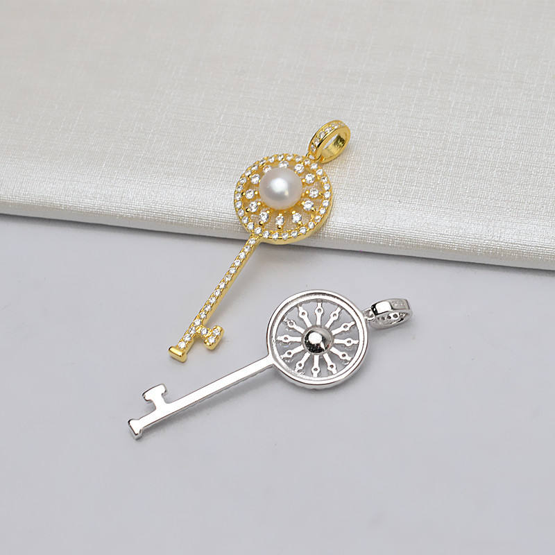 จี้เงินแท้ Han Chao S925 ประดับมุก 6-7 เม็ด สำหรับทำเครื่องประดับ DIY รูปทรงกุญแจ สำหรับผู้หญิง พร้อมถาดเปล่า 609