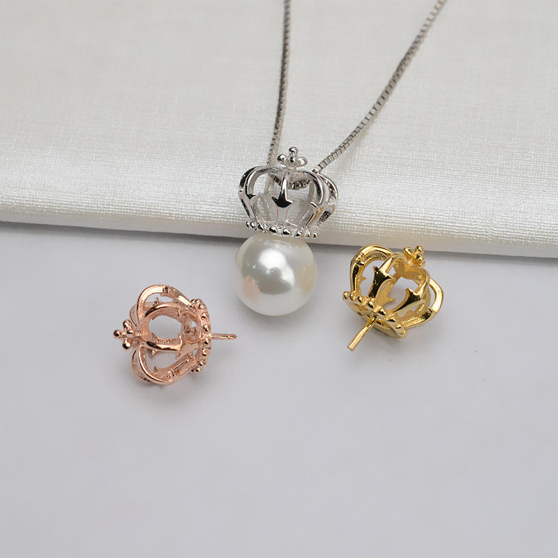 จี้มงกุฎเงินแท้ S925 แบบสามมิติ พร้อมสร้อยคอไข่มุกแบบเรียบง่าย จี้ไข่มุกและเครื่องประดับสำหรับผู้หญิง