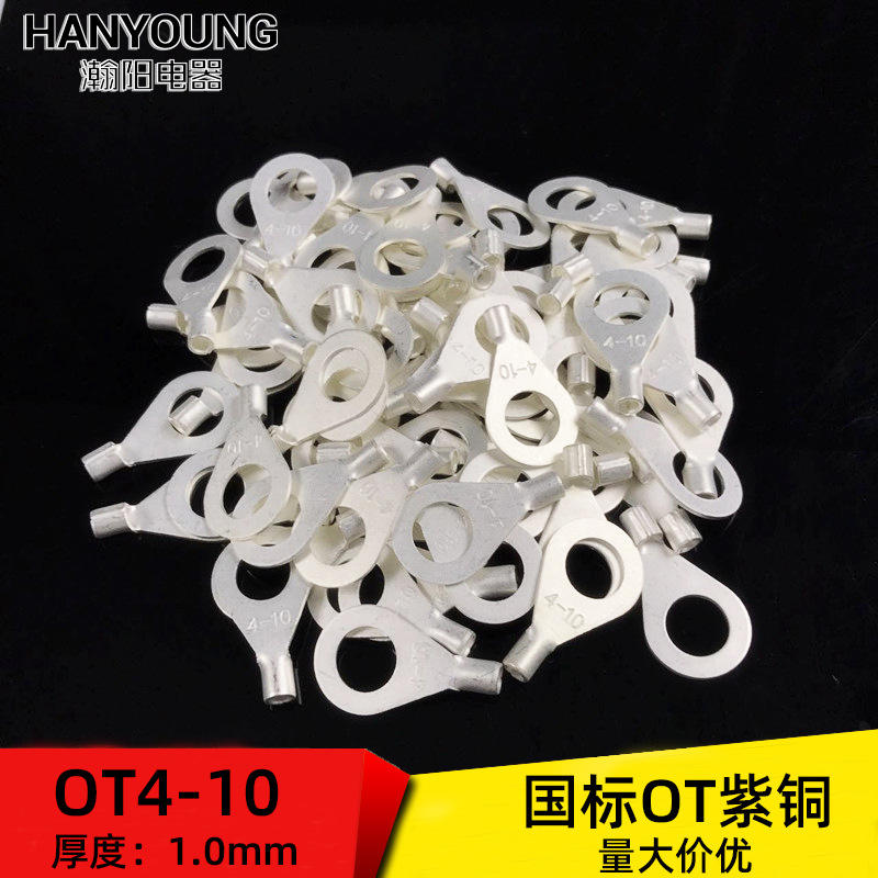 ขั้วต่อวงแหวนฮันยี่ OT4-10 ทองแดงบริสุทธิ์ หนา 1.0 มม. สำหรับงานอิเล็กทรอนิกส์และวิศวกรรมไฟฟ้า