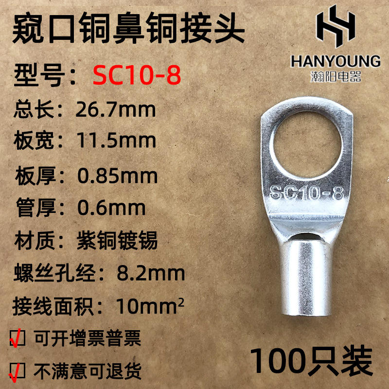 ขั้วต่อวงแหวนฮันยี่ SC10-6 8 10 ทองแดงบริสุทธิ์ 10 ตร.มม. อุปกรณ์เชื่อมต่อทางไฟฟ้าสำหรับงานวิศวกรรมไฟฟ้า
