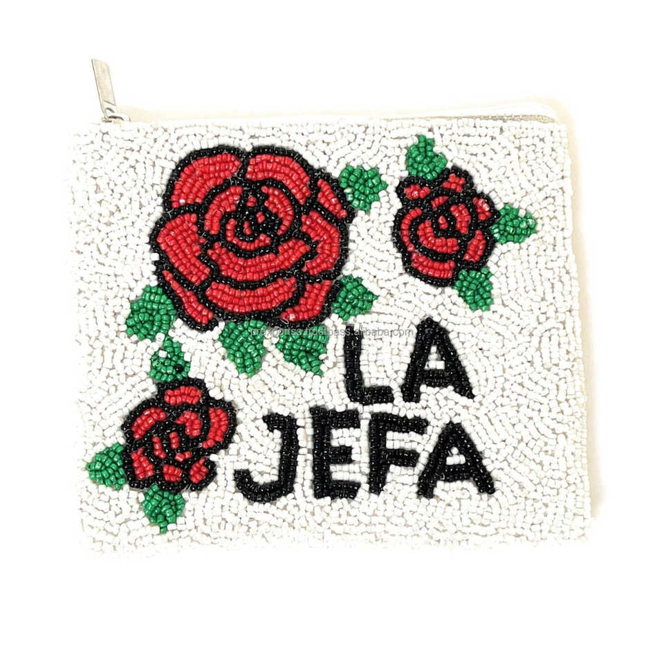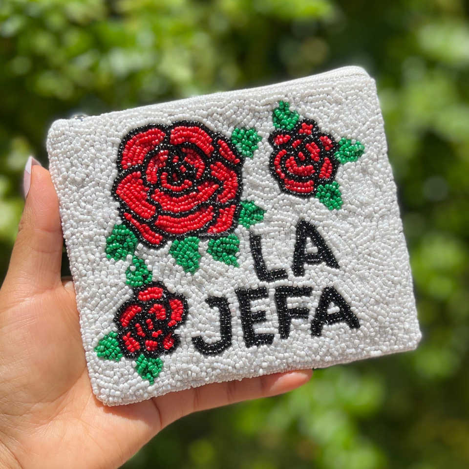 กระเป๋าใส่เหรียญปักลายดอกกุหลาบแดง La Jefa ประดับลูกปัด งานปักมือ พร้อมซิป กระเป๋าคลัทช์ปักเลื่อมลายดอกไม้ กระเป๋าสั่งทำพิเศษ ของขวัญ ใช้ได้ทั้งชายและหญิง ทันสมัย