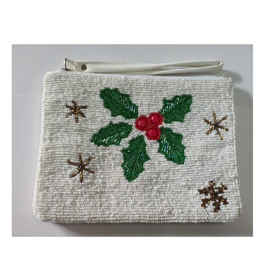 กระเป๋าใส่เหรียญลูกปัดทำมือ ลายใบไม้ ปิดซิป เป็นมิตรกับสิ่งแวดล้อม หรูหรา ขนาดเล็ก ใส่กุญแจ บัตร เงินสดได้