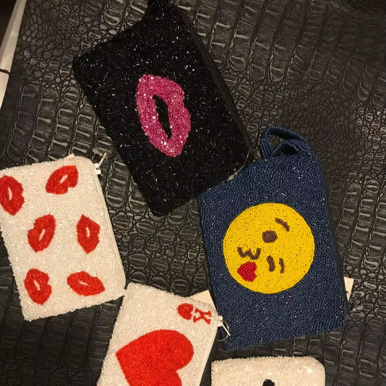 กระเป๋าใส่เหรียญลูกปัดทำมือ กระเป๋าใส่เงินขนาดเล็กแบบซิป กระเป๋าคลัทช์ตลกๆ กระเป๋าลูกปัดสั่งทำ ของขวัญสำหรับสาวๆ สไตล์วินเทจ สำหรับงานปาร์ตี้และการเดินทาง