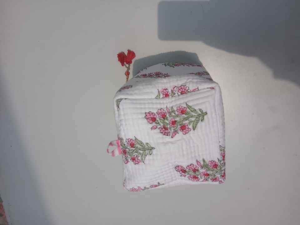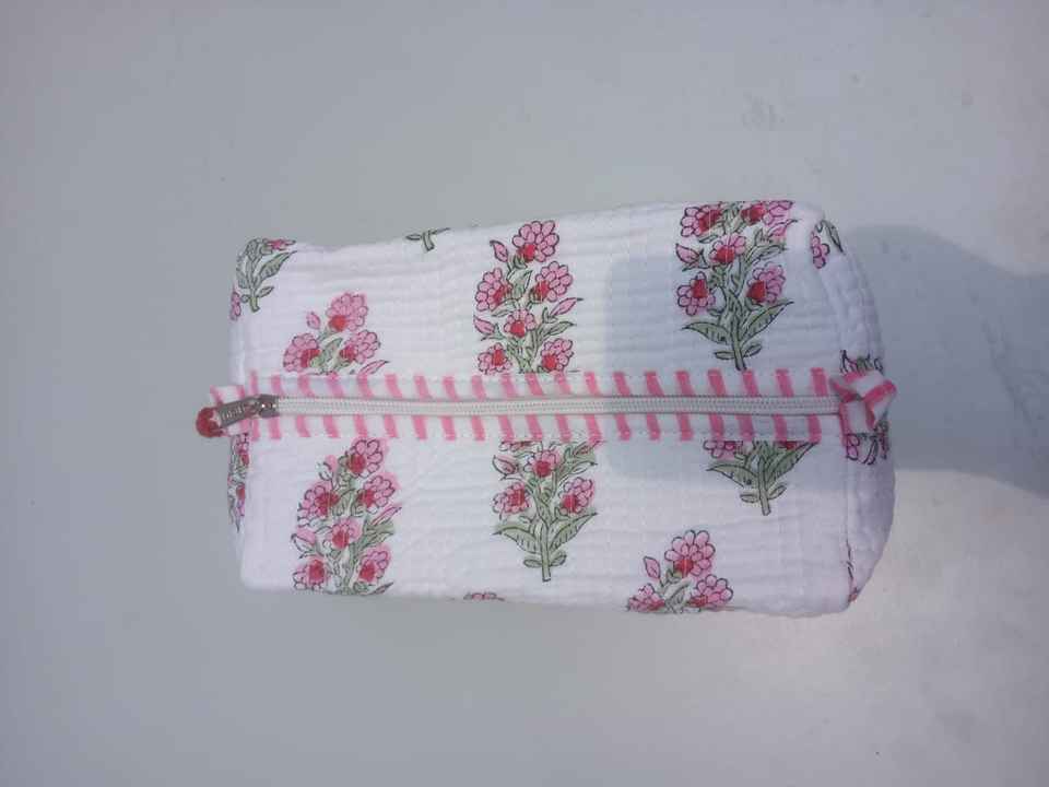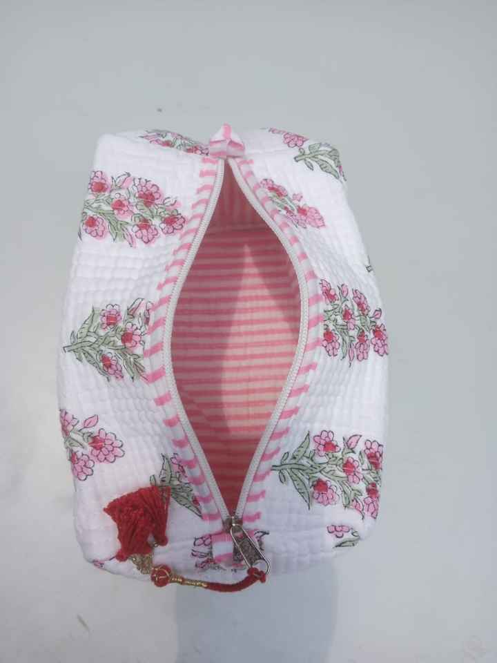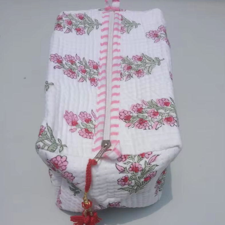 กระเป๋าเครื่องสำอางผ้าฝ้ายแบบบล็อกมือกระเป๋าเดินทางขนาดเล็กกระเป๋าผ้าฝ้ายพิมพ์ลายดอกไม้กระเป๋าขนาดเล็กกันน้ำ