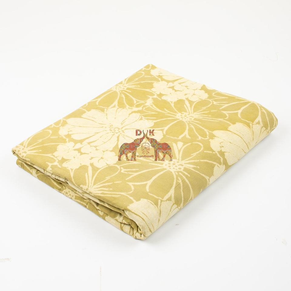 ผ้าพิมพ์ลายดอกไม้ด้วยมือ ย้อมสีธรรมชาติ วัสดุสิ่งทอจากอินเดีย สำหรับทำชุดเดรส คุร์ติ งานควิลท์ และของตกแต่งบ้าน