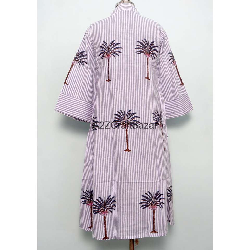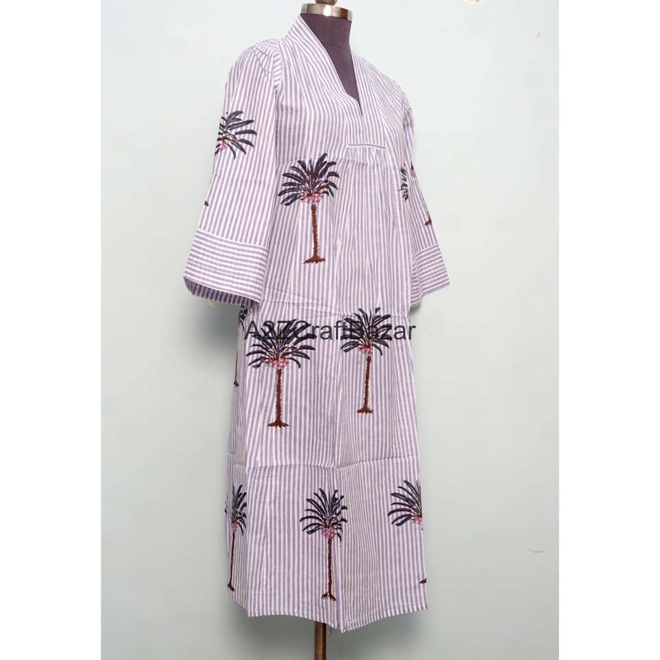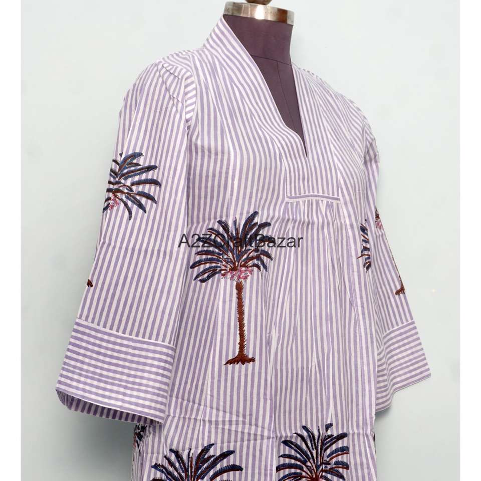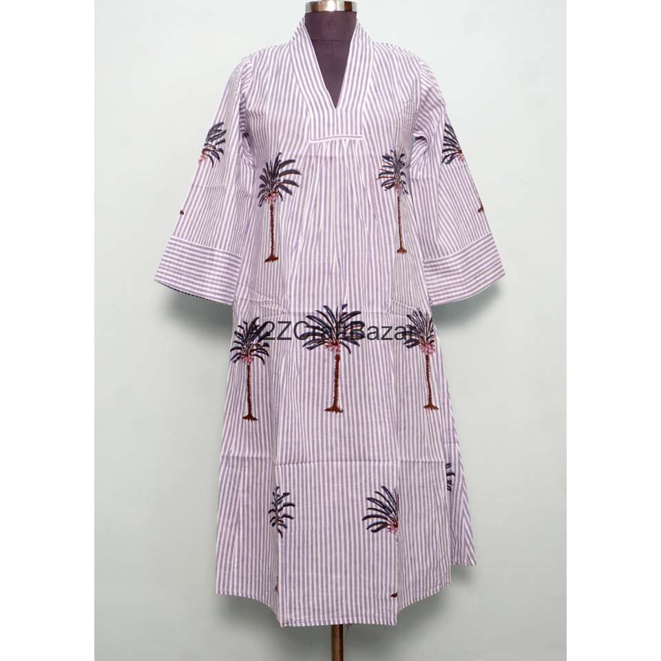เดรสผ้าฝ้ายพิมพ์ลายดอกไม้แบบแฮนด์บล็อก แขนสามส่วน คอวี ชุดเดรสยาวผ้าฝ้ายสไตล์เม็กซิกัน ชุดเดรสยาวผ้าฝ้ายสำหรับใส่ในฤดูร้อน