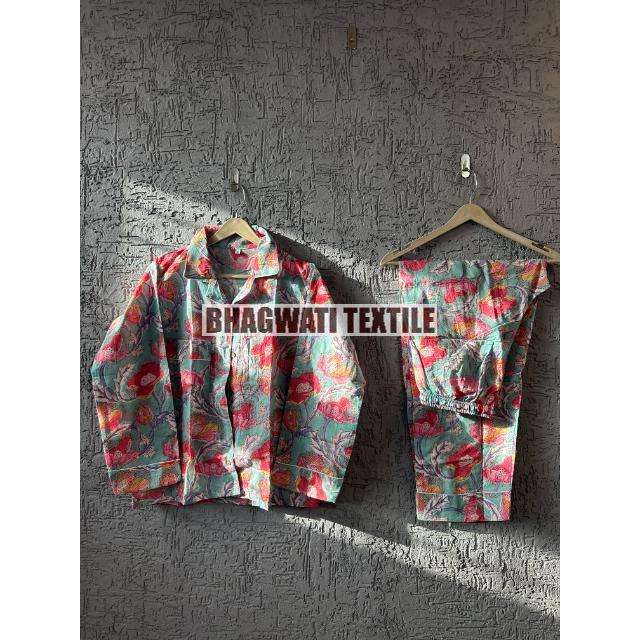 ชุดนอนพิมพ์ลายดอกไม้แบบแฮนด์บล็อกสำหรับผู้หญิง ชุดนอนผ้าฝ้ายอินเดียทำมือ ชุดนอนสำหรับผู้หญิง