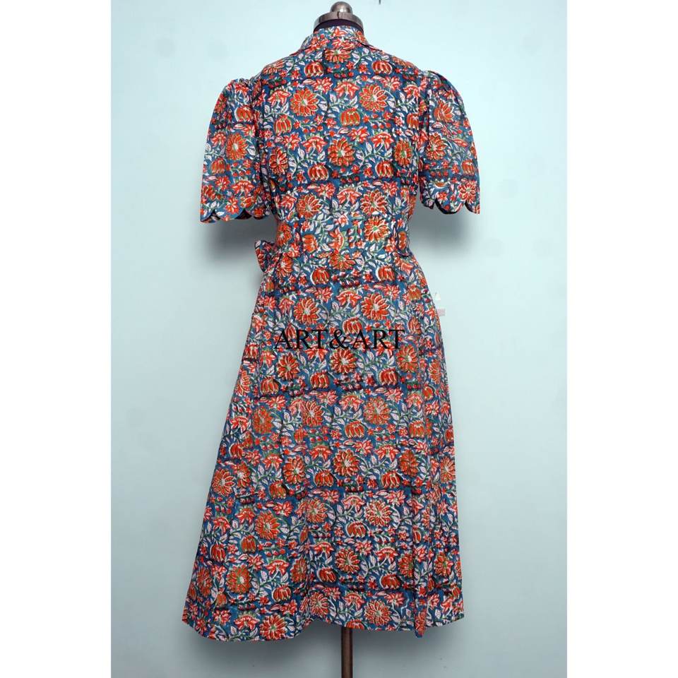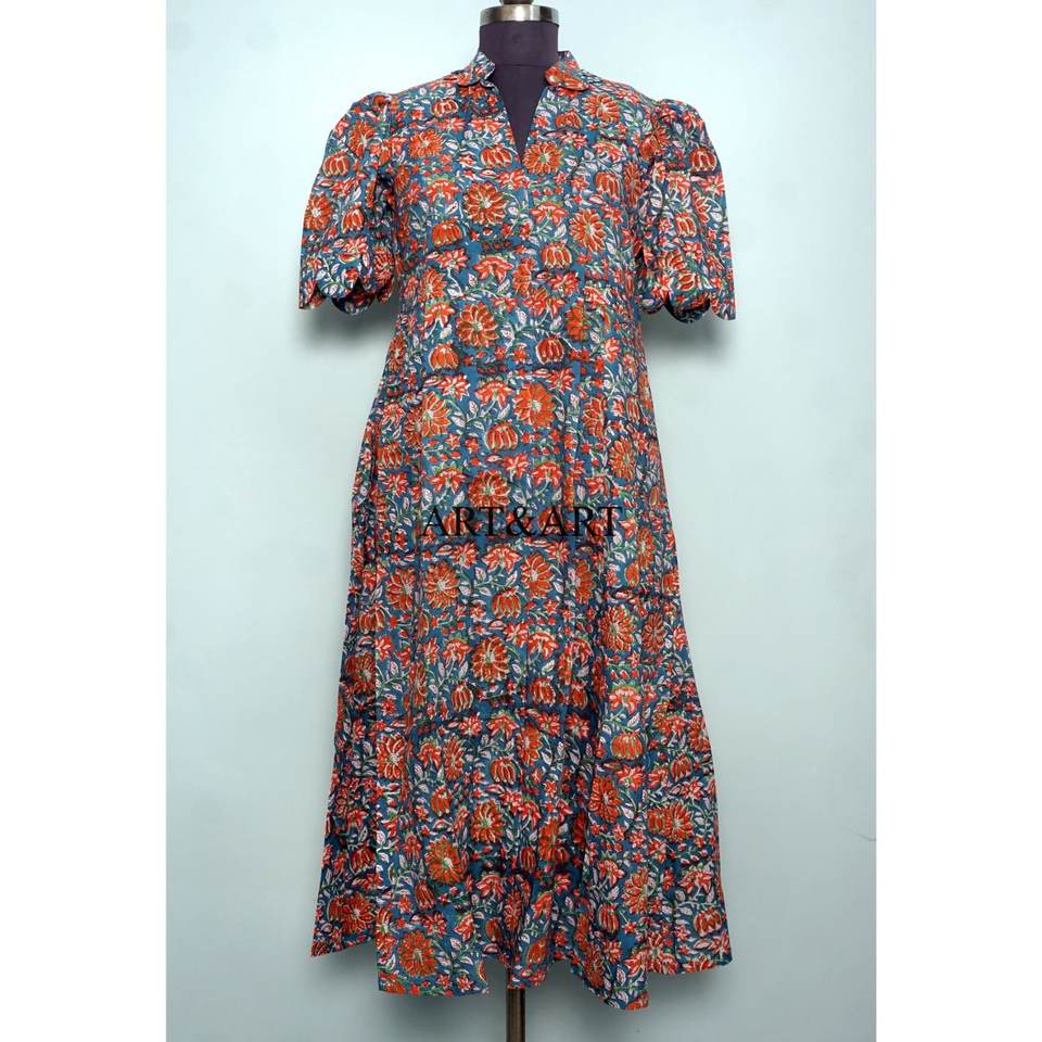 เดรสยาวทรงเอผ้าฝ้ายแท้พิมพ์ลายดอกไม้สไตล์หวานน่ารักสำหรับใส่ในชีวิตประจำวัน งานปาร์ตี้ ซักได้ ใส่สบาย