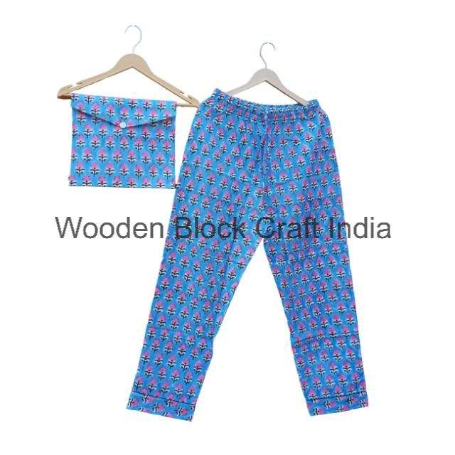 Hand Block Floral Printed Women's Cotton Pajama Set Handmade Lightweight Nightgown Soft Summer Autumn Sleepwear for Spring