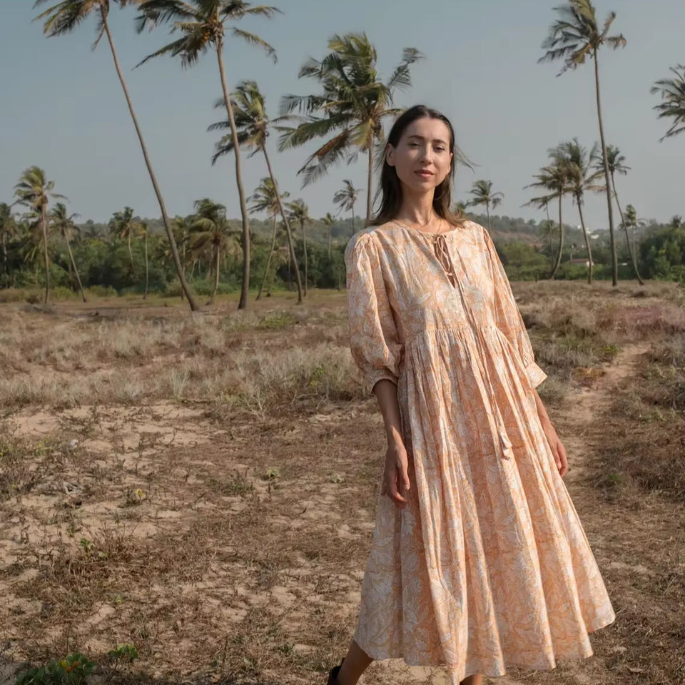 ชุดเดรสยาวสไตล์โบฮีเมียนสำหรับงานแต่งผ้าคอตตอนลายดอกไม้สไตล์อินเดียสำหรับฤดูร้อนชุดคาฟตันแบบลำลองทรงพอดีตัวสำหรับคนท้องฤดูใบไม้ร่วง