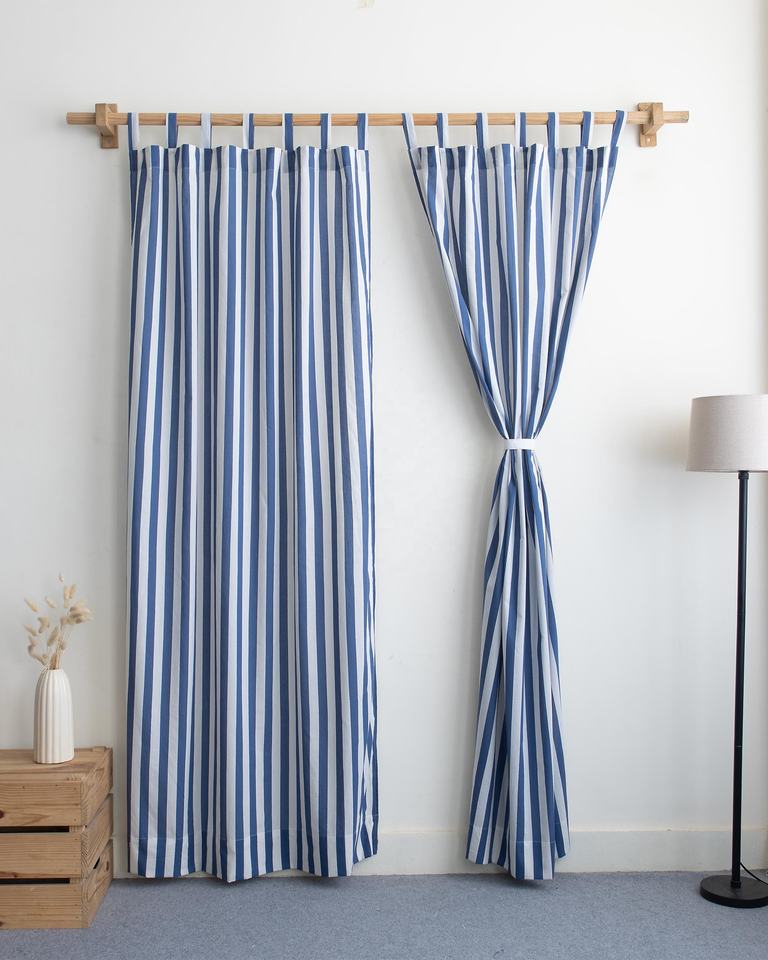 ผ้าม่านและผ้าม่านหน้าต่างลายทางพิมพ์ลายด้วยมือจากผ้าฝ้าย 2 ชิ้น สำหรับตกแต่งหน้าต่างห้องนอนสไตล์ฟาร์มเฮาส์
