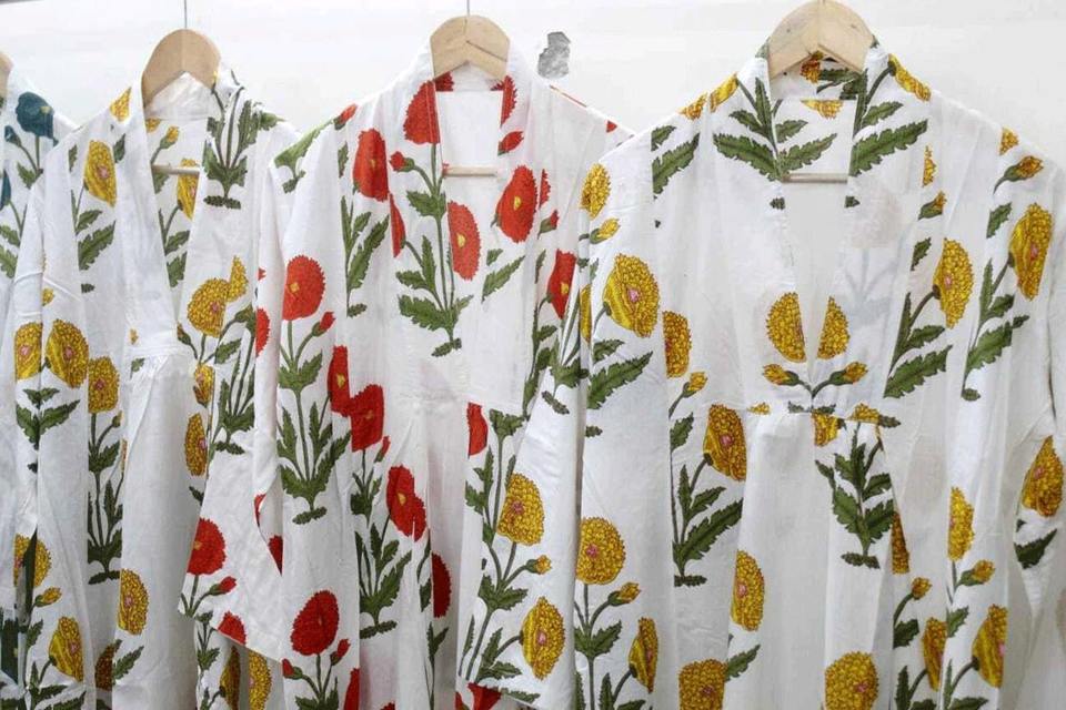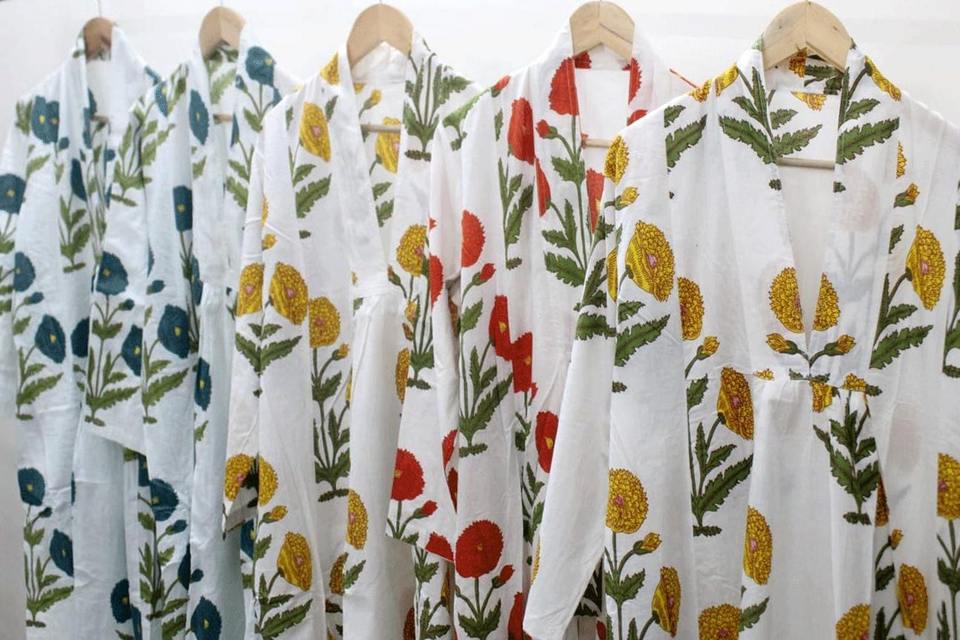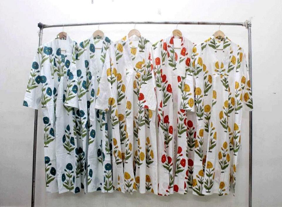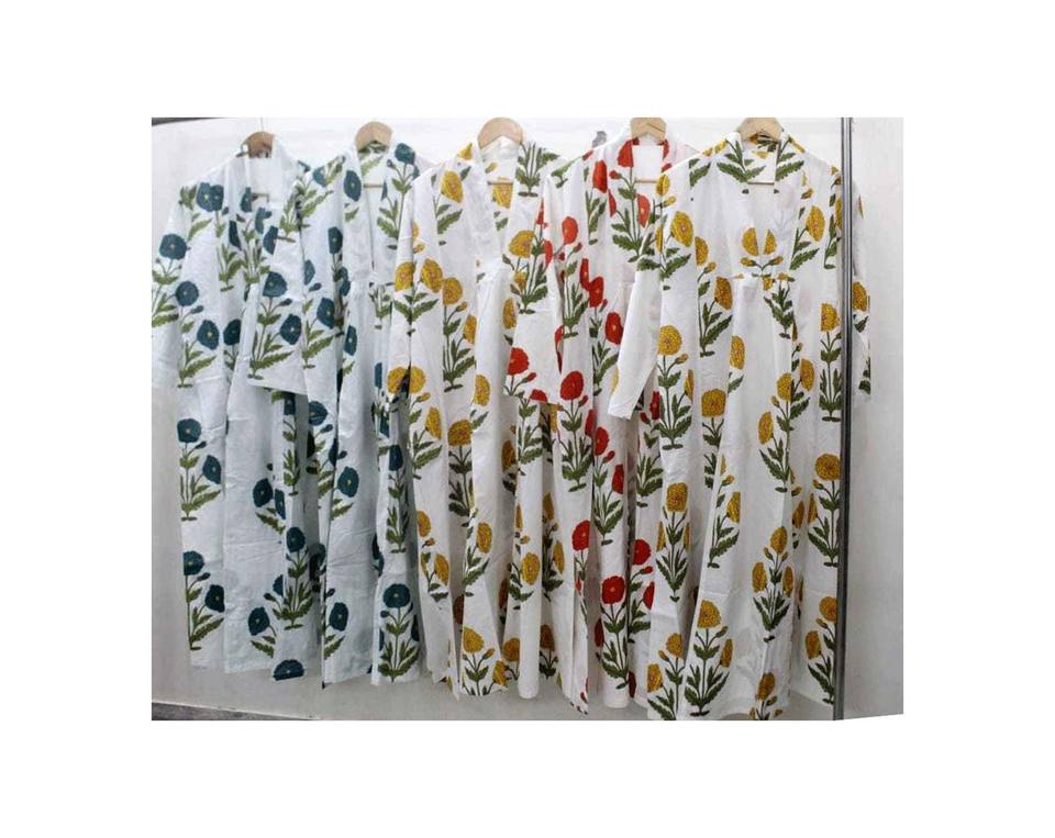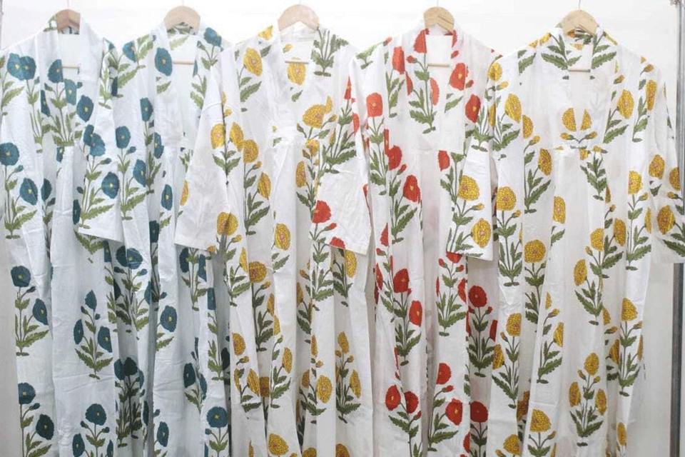 ชุดเดรสผ้าฝ้ายพิมพ์ลายบล็อกด้วยมือ สไตล์โบฮีเมียนลายดอกไม้ ความยาวปานกลาง