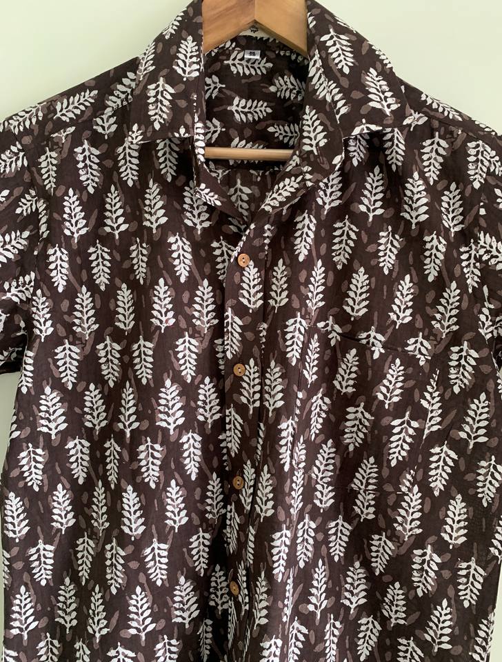 เสื้อเชิ้ตแขนสั้นผ้าฝ้ายพิมพ์ลายสำหรับผู้ชายเสื้อเชิ้ตสีน้ำตาลสำหรับผู้ชายจำนวนมาก