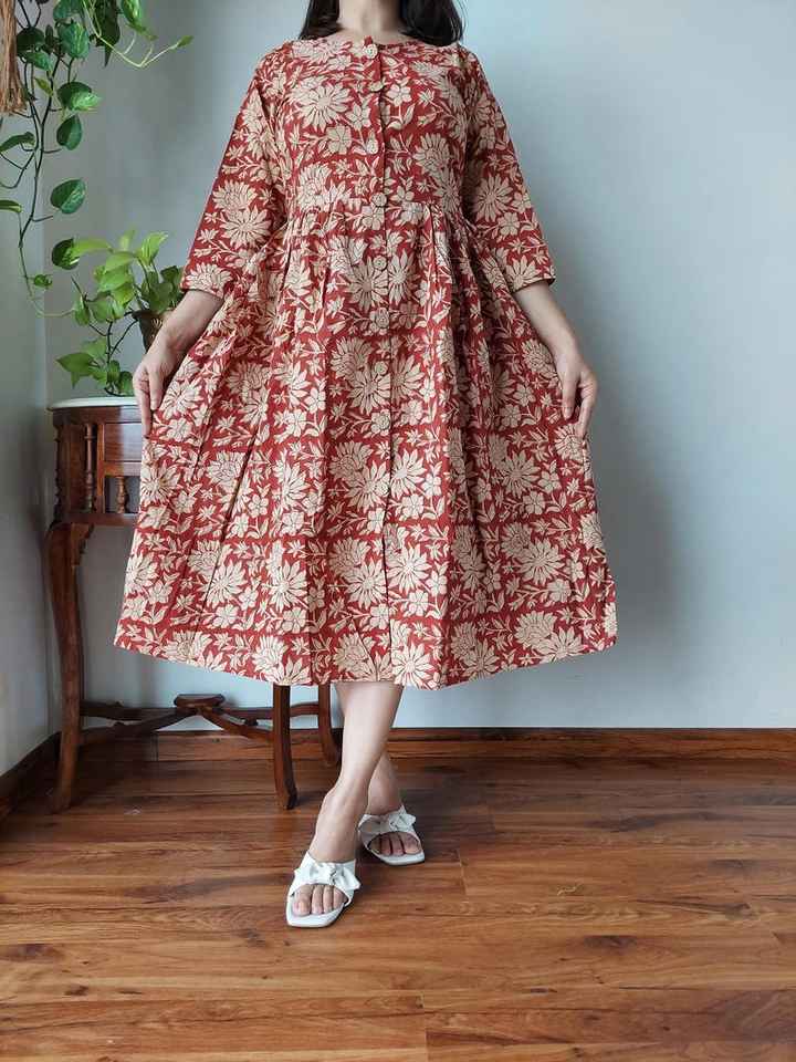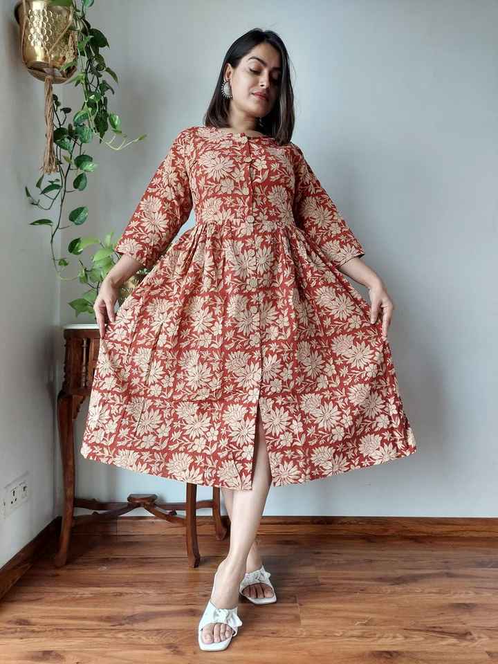 ชุดเดรสวันพีซพิมพ์ลายทำจากผ้าฝ้ายงานปาร์ตี้ของผู้หญิงชุดเดรสผ้าฝ้ายอินเดียงานแฮนด์เมดของขวัญสำหรับเธอ