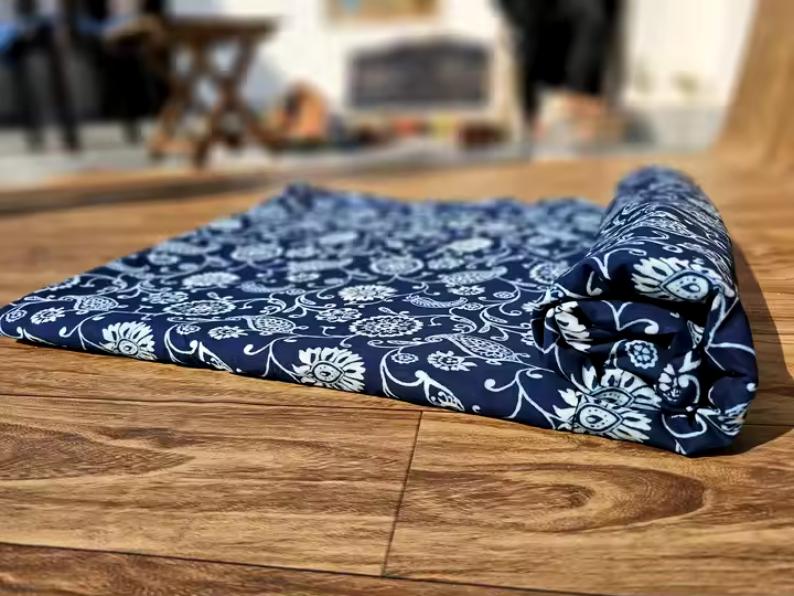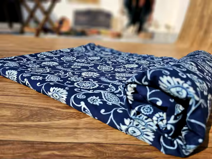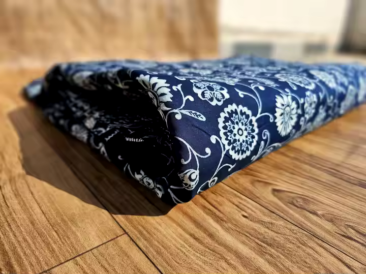 สไตล์:ผ้าพิมพ์ลายบล็อก, ลายที่กำหนดเอง, พิมพ์สีย้อม, พิมพ์ลายดอกไม้, สีน้ำเงินคราม