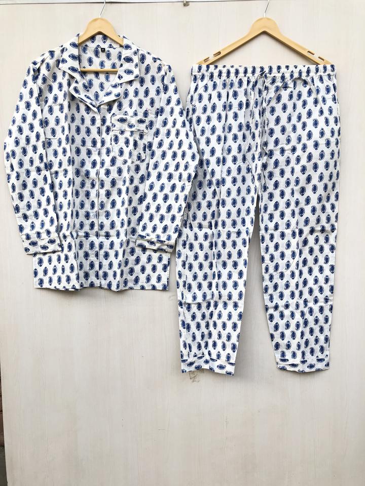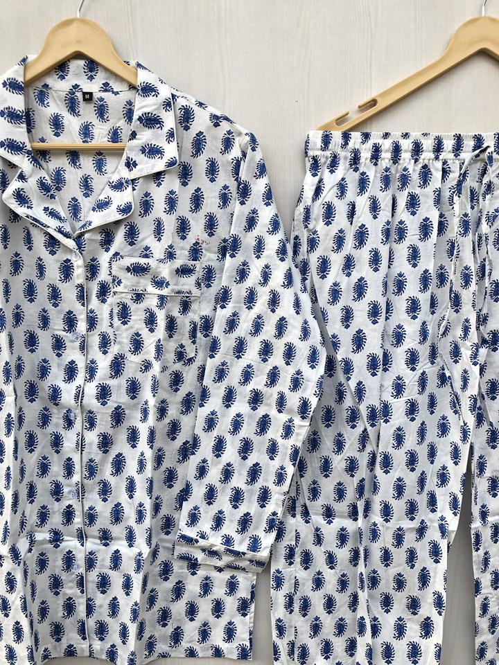 ชุดนอนผ้าฝ้ายพิมพ์ลายดอกไม้แบบอินเดีย