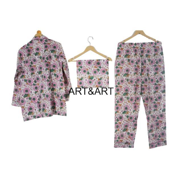 ชุดชุดนอนยาวผ้าฝ้ายน้ำหนักเบาพิมพ์ลายดอกไม้สำหรับใส่อยู่บ้านชุดฤดูร้อนงานแฮนด์เมดใหม่อินเดีย