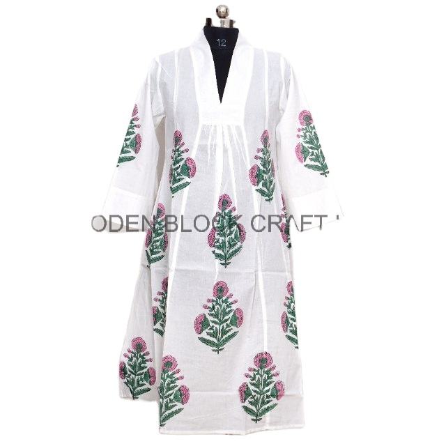 Hand Block Print Long Beach Cover Sleepwear Kimono Rabe Indian Handmade Women's Kaftan Eco-Friendly Floral Cotton Maxi Dress