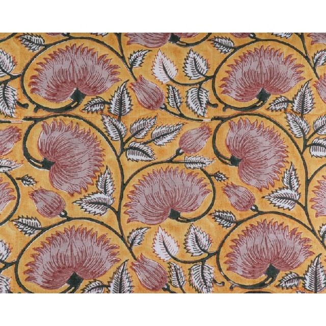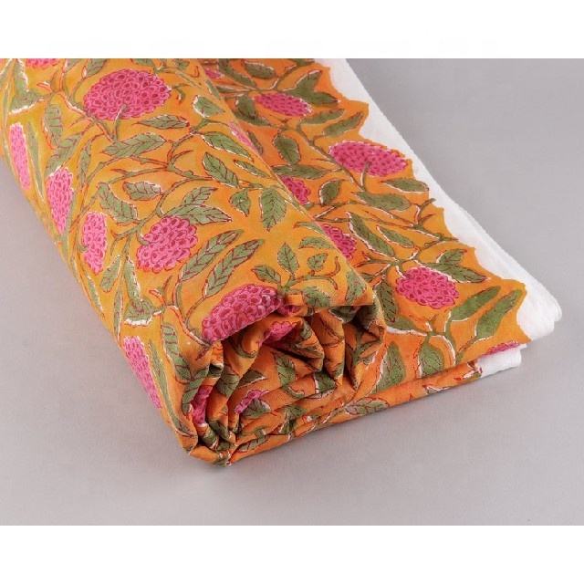 บล็อกมือพิมพ์วิ่งเย็บผ้าผ้าพันคอผ้าตกแต่งดอกไม้มัสตาร์ดและผ้าฝ้ายสีชมพู