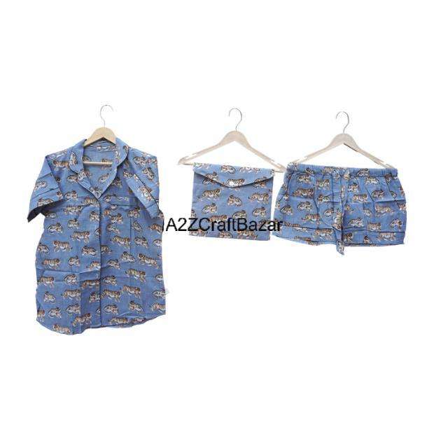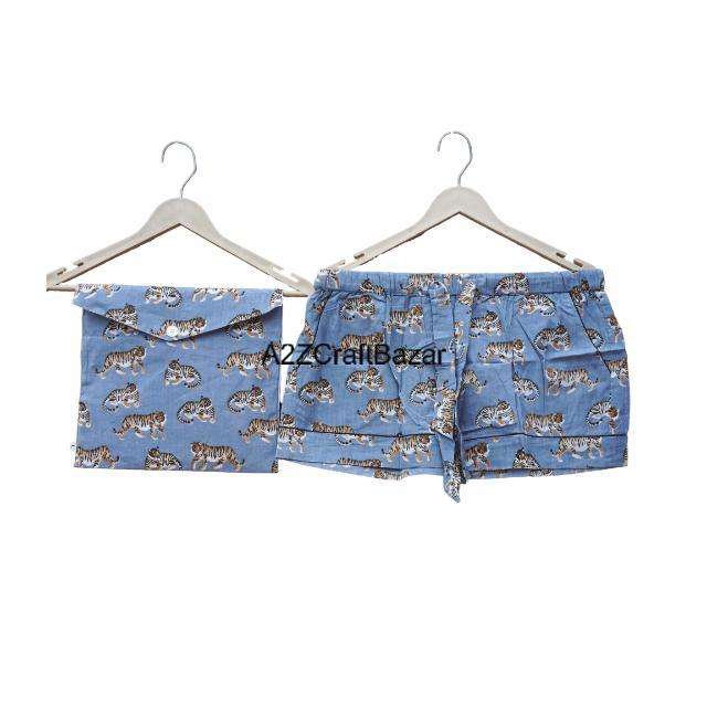 ชุดนอนขาสั้นพิมพ์ลายด้วยมือ ชุดนอนผ้าฝ้ายทำมือจากอินเดีย ชุดนอนขาสั้นใส่สบาย ชุดนอนฤดูร้อน ชุดนอน