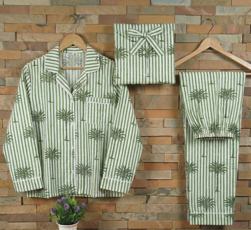 ชุดนอนผ้าฝ้ายแท้พิมพ์ลายด้วยมือ ปักด้วยเครื่องจักร สำหรับฤดูร้อน ขายส่งจากอินเดีย
