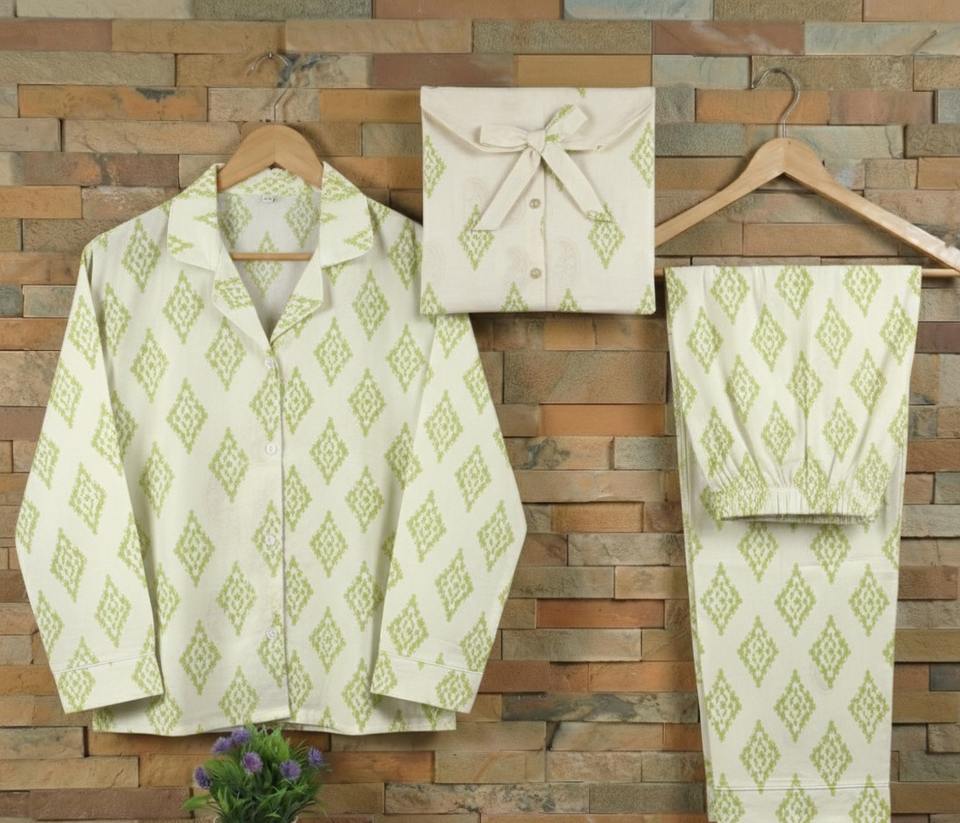 ชุดนอนผ้าฝ้ายทอมือพิมพ์ลายบล็อกสำหรับฤดูร้อน เนื้อผ้านุ่มสบาย ขายส่งจำนวนมากจากอินเดีย