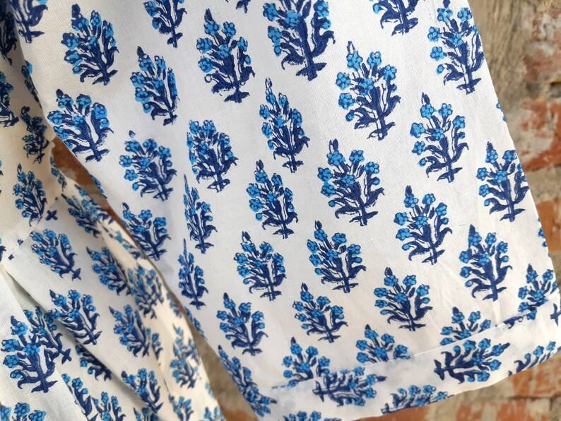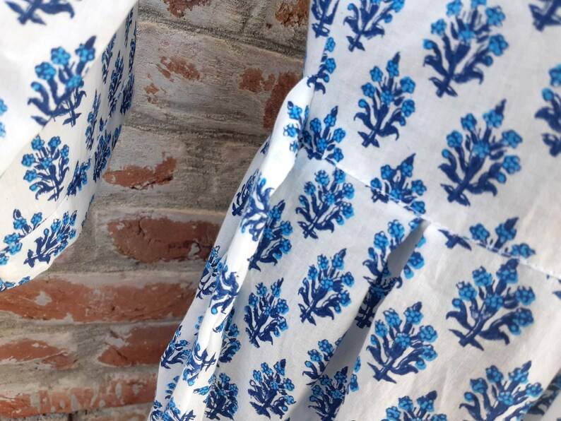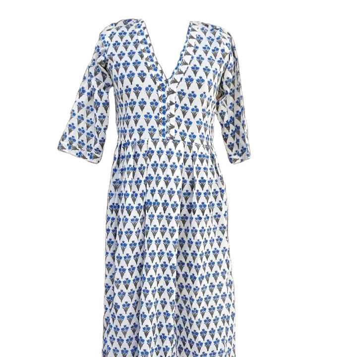 Hand Block Printed 100% Cotton Indian Dress Casual Tunics and Long Gown with Embroidered Decoration"