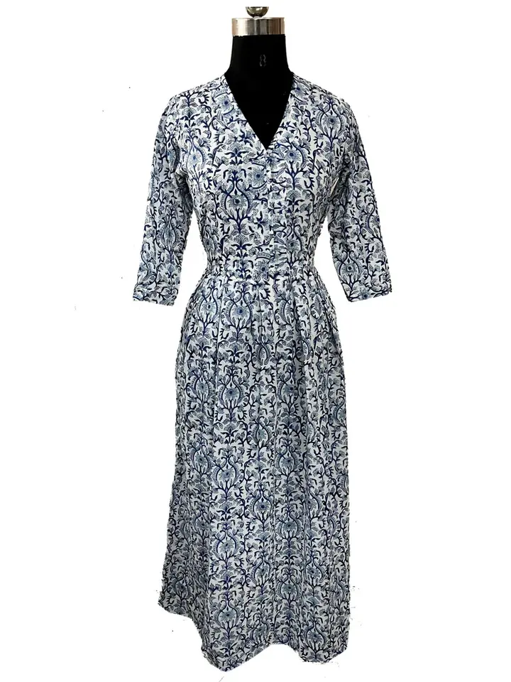 ชุดเดรสยาวสไตล์อินเดียชุดเดรสผ้าฝ้ายปักลายแบบลำลองพร้อมรูปลอก100%