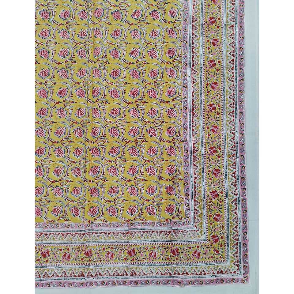 ผ้าปูที่นอนคิงไซส์ลายดอกไม้พิมพ์ลายด้วยมือ 100% ผ้าฝ้าย พร้อมปลอกหมอน ชุดผ้าห่ม 3 ชิ้น สำหรับใช้ในบ้าน