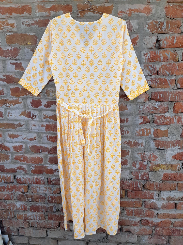 ชุดเดรสแม็กซี่ผ้าฝ้ายอินเดียพิมพ์ลายด้วยมือ คอวี แขนยาว ปักลายดอกไม้ สำหรับผู้หญิง