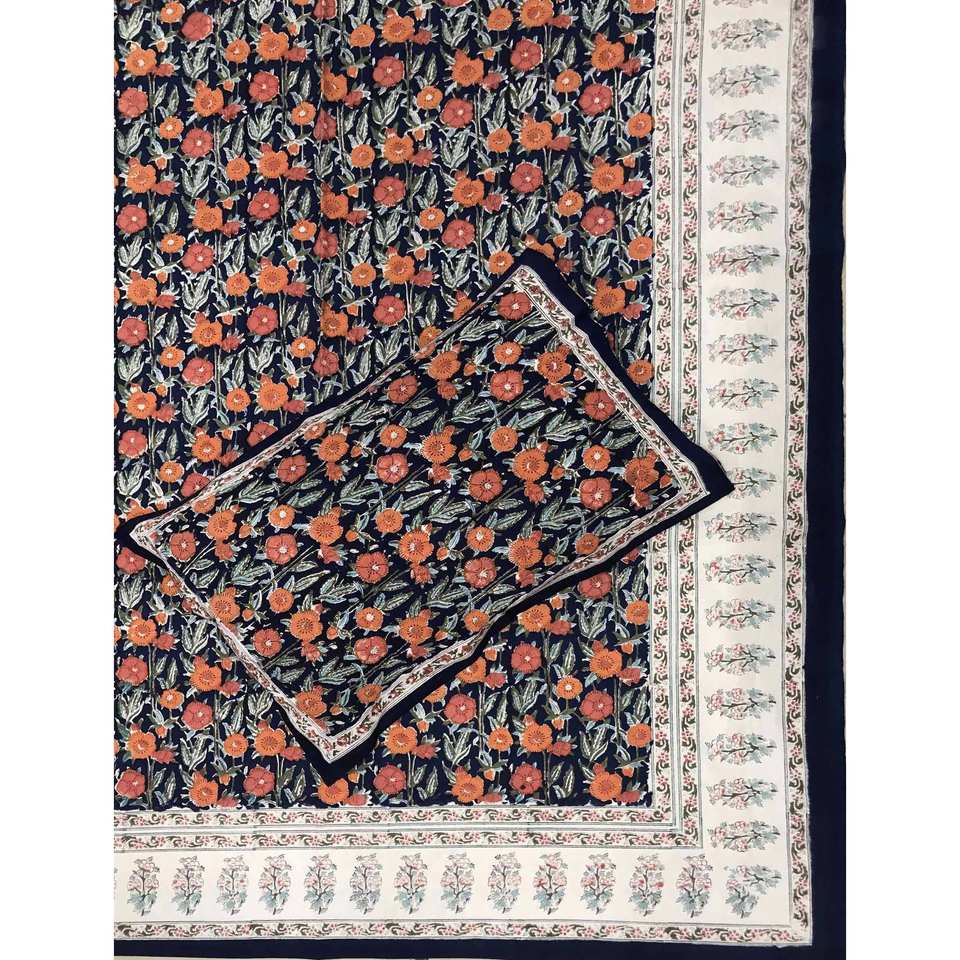ผ้าปูที่นอนคู่ผ้าฝ้ายพิมพ์ลายด้วยมือ พร้อมปลอกหมอนลายดอกไม้ สำหรับใช้ในบ้าน