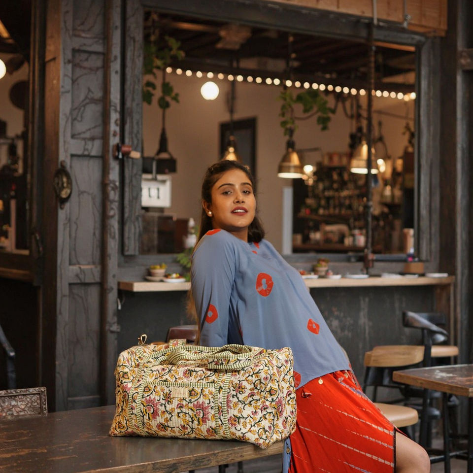 กระเป๋าผ้าคอตตอนพิมพ์ลายดอกไม้หลากสีทำด้วยมือเป็นมิตรกับสิ่งแวดล้อมจุได้เยอะกระเป๋าสำหรับเดินทางยิม