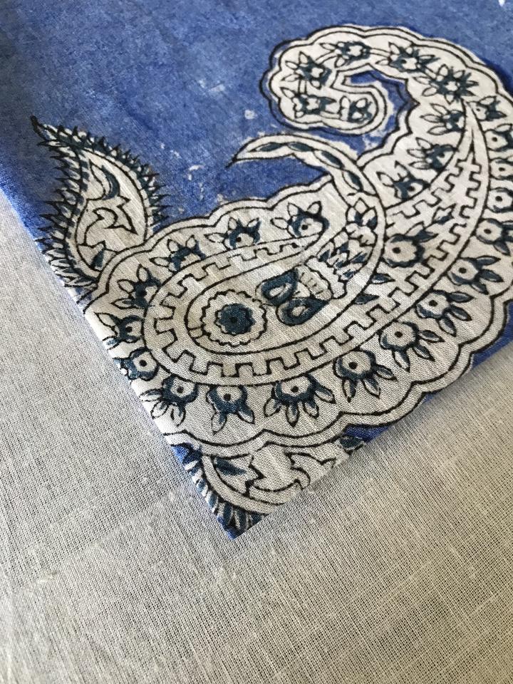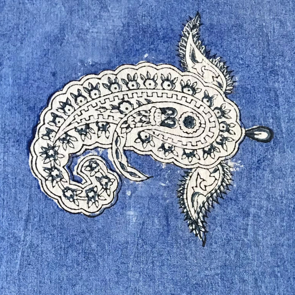 ผ้าฝ้ายพิมพ์ลายด้วยมือ ลายคลาสสิก ลายเพสลีย์ ลายบูตะ | ผ้าสิ่งทอพื้นเมืองอินเดียสีน้ำเงินคราม