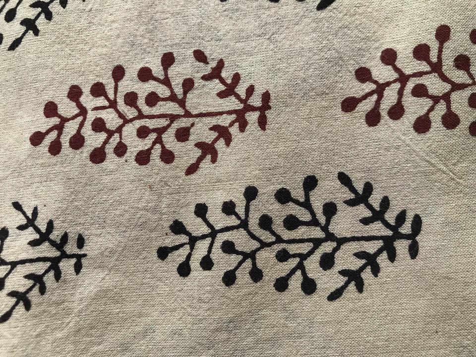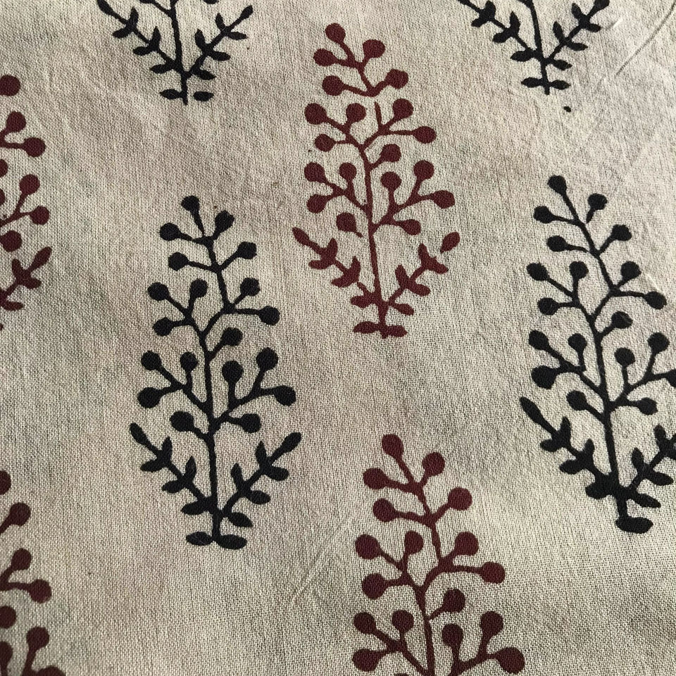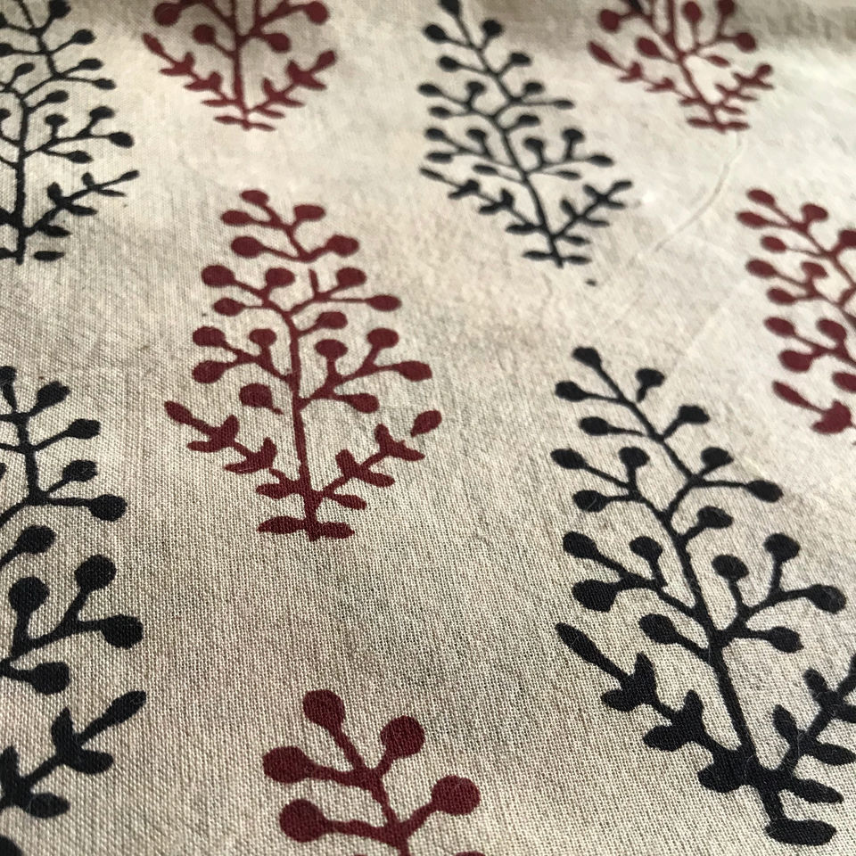 ผ้าฝ้ายพิมพ์ลายด้วยมือ ลายดอกบูติสีแดงและดำบนพื้นสีธรรมชาติ | ตลาดขายส่งเจียปุร์