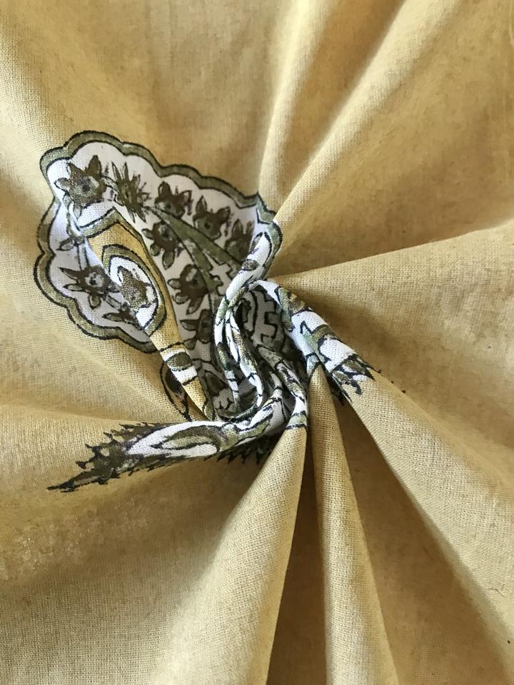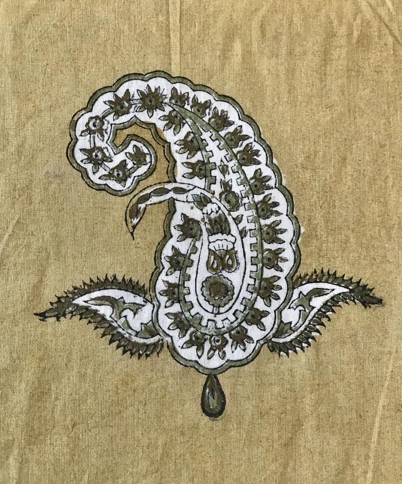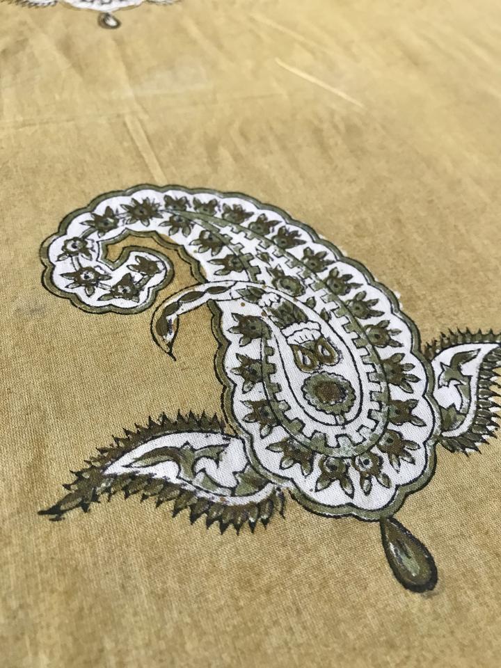 ผ้าฝ้ายพิมพ์ลายด้วยมือ ลายเพสลีย์ บูตะ | ผ้าสีเหลืองมัสตาร์ดแบบอินเดีย